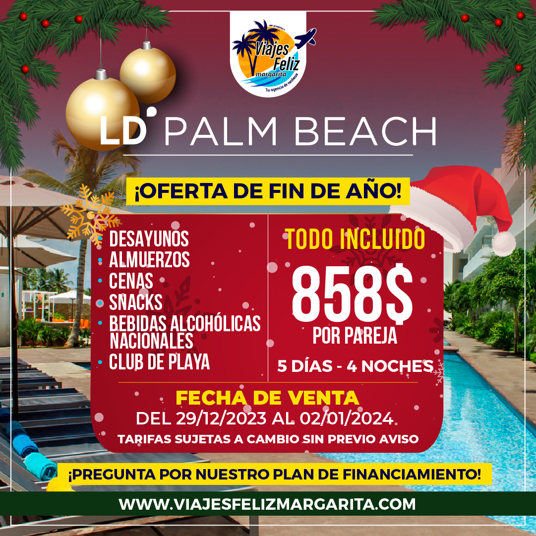Celebra el Fin de Año y Navidad en La Isla de Margarita y Coche, Venezuela, con los paquetes todo incluido de «Viajes Feliz Margarita«. Estas festividades son especiales, y qué mejor manera de disfrutarlas que en un paraíso caribeño. Ofrecemos experiencias de lujo con un servicio VIP que te asegura unas vacaciones memorables.